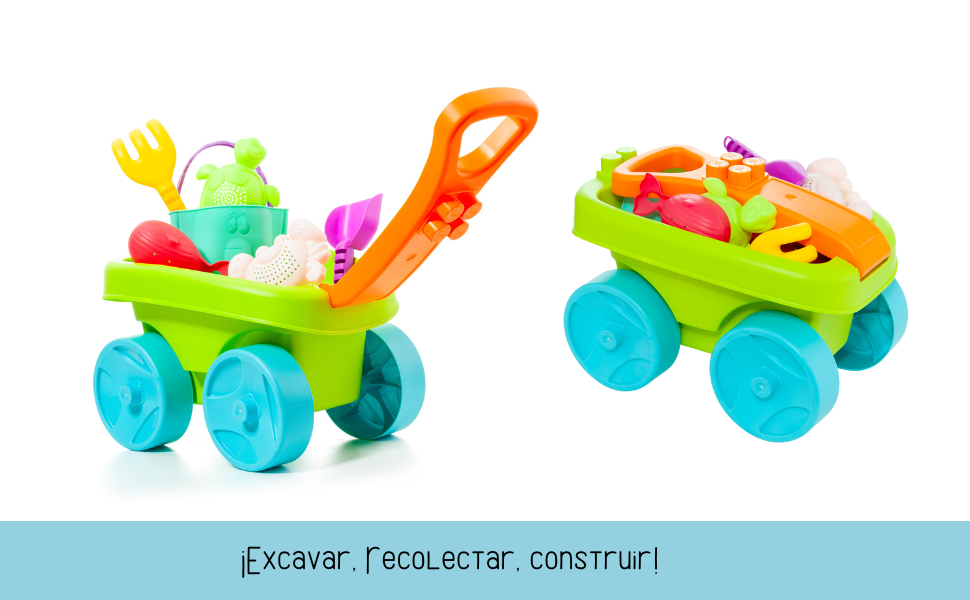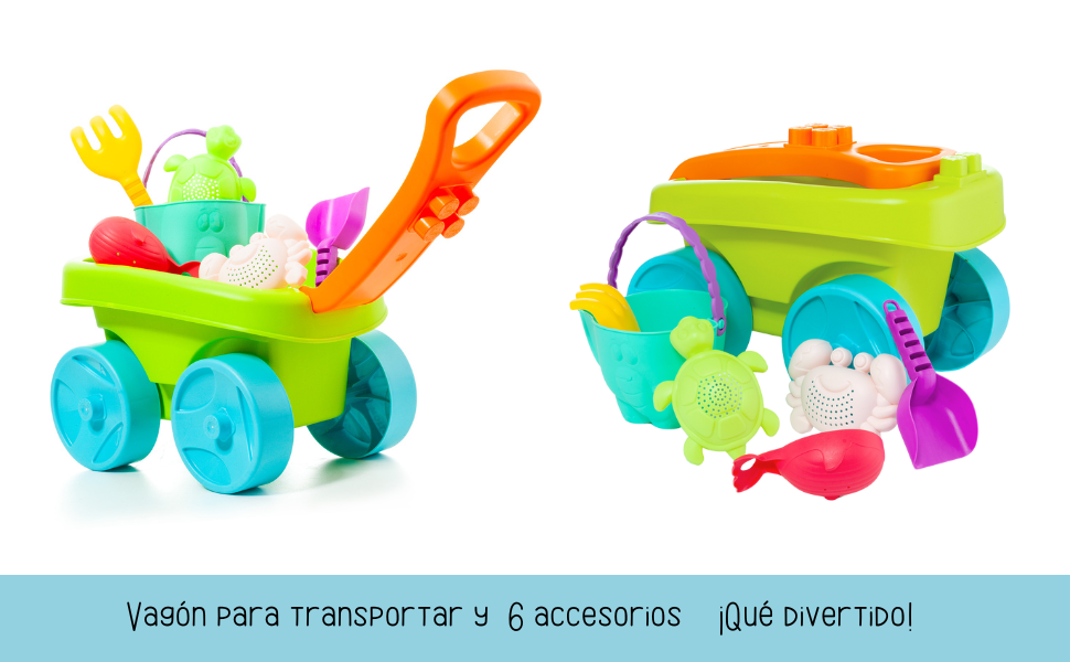 ✔️ Vagón con ruedas: fácil de transportar y perfecto para llevar todos los juguetes a la orilla