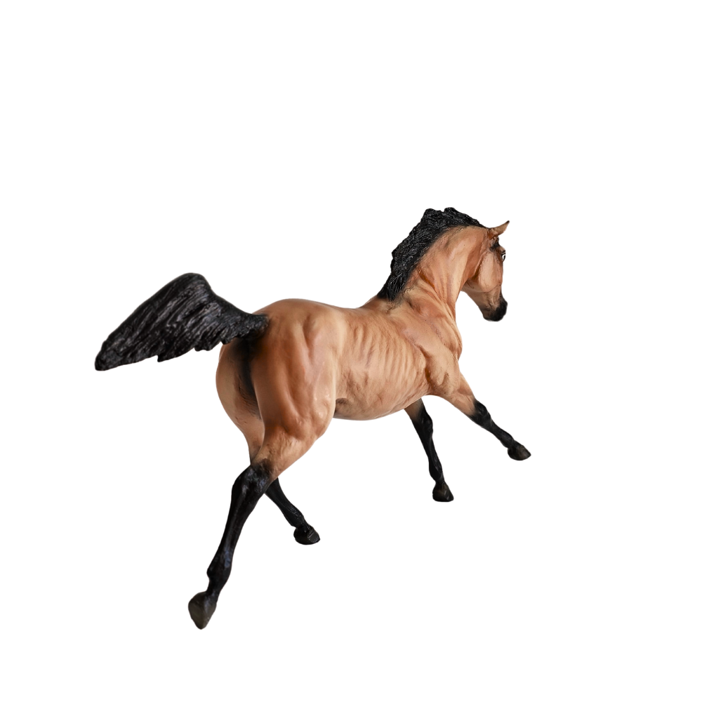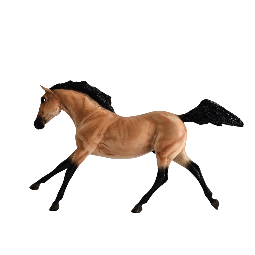 Si alguna vez soñaste con tener un caballo digno de una aventura del Viejo Oeste, ¡aquí está Bonanza! Este elegante modelo captura toda la energía y el espíritu indomable de un auténtico corcel del rancho. Su pelaje dorado brilla como el sol del atardecer, mientras que sus patas negras parecen hechas para galopar a toda velocidad por los vastos campos.