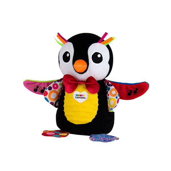 El Pingüino Sinfonía de Lamaze es un juguete interactivo y educativo diseñado para bebés a partir de los 6 meses. Este simpático pingüino permite que los más pequeños exploren el mundo de la música y el sonido de manera divertida y segura. Al presionar su vientre, el pingüino reproduce 4 melodías diferentes, introduciendo a tu bebé en el ritmo y la armonía desde temprana edad.