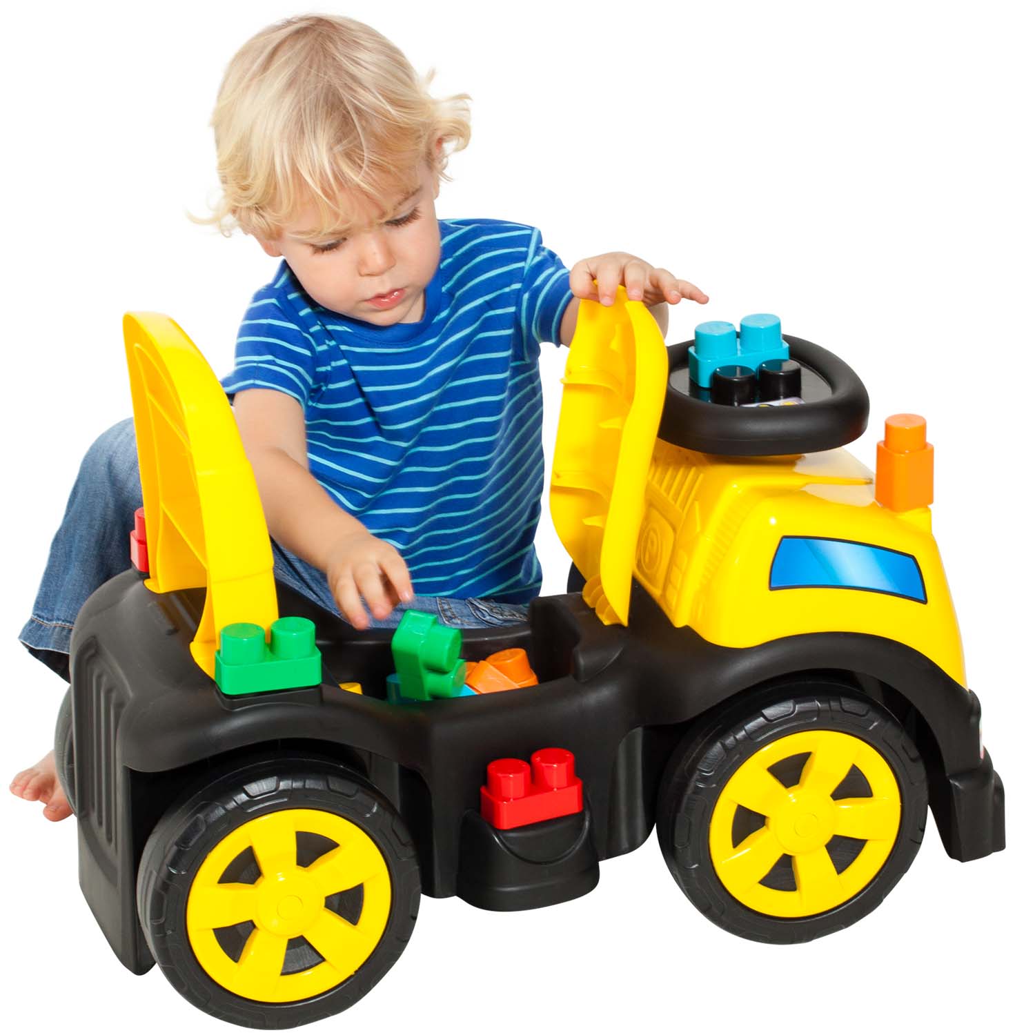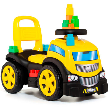 Molto Ride on truck Amarillo I Juguete montable con 10 bloques de construcción incluidos (Amarillo)