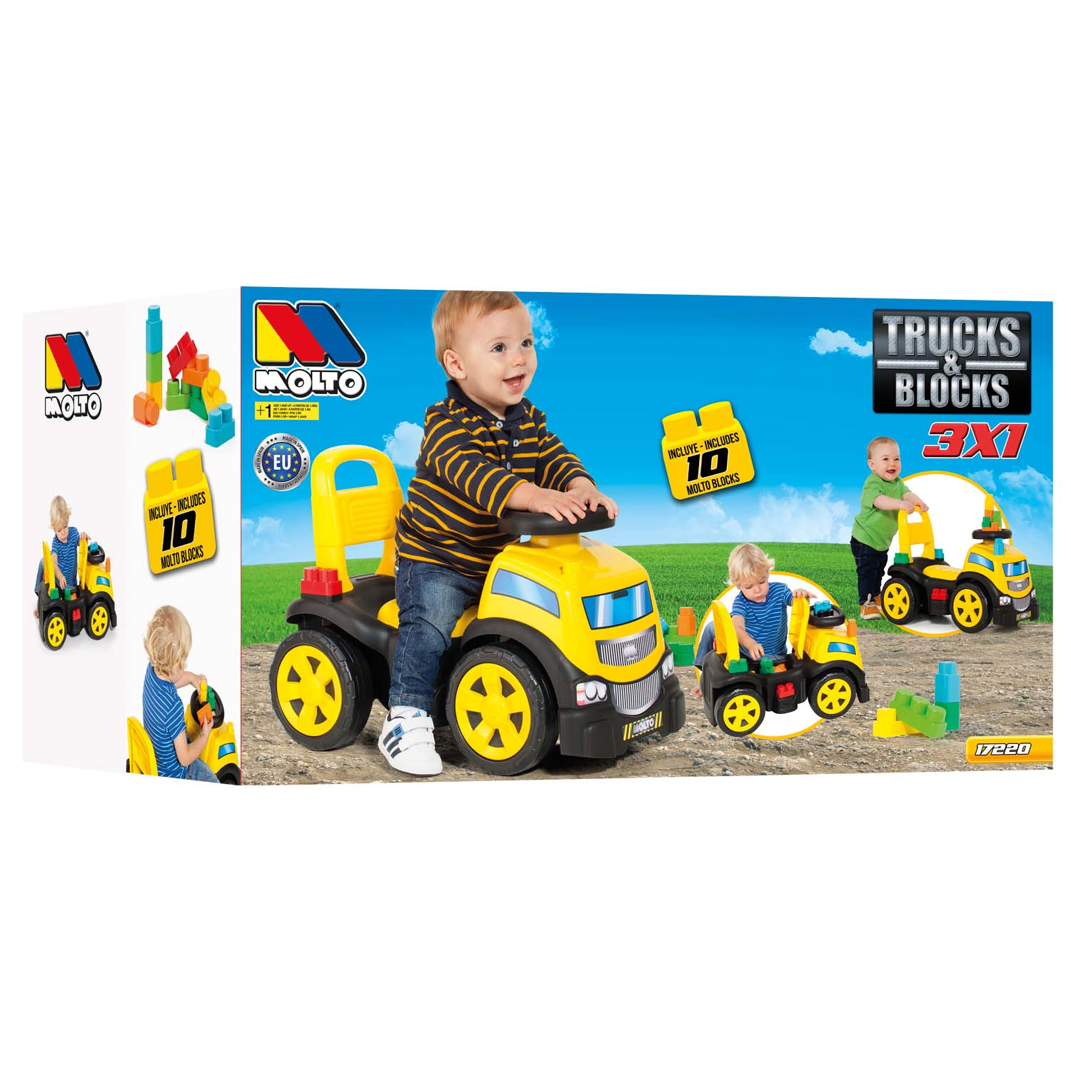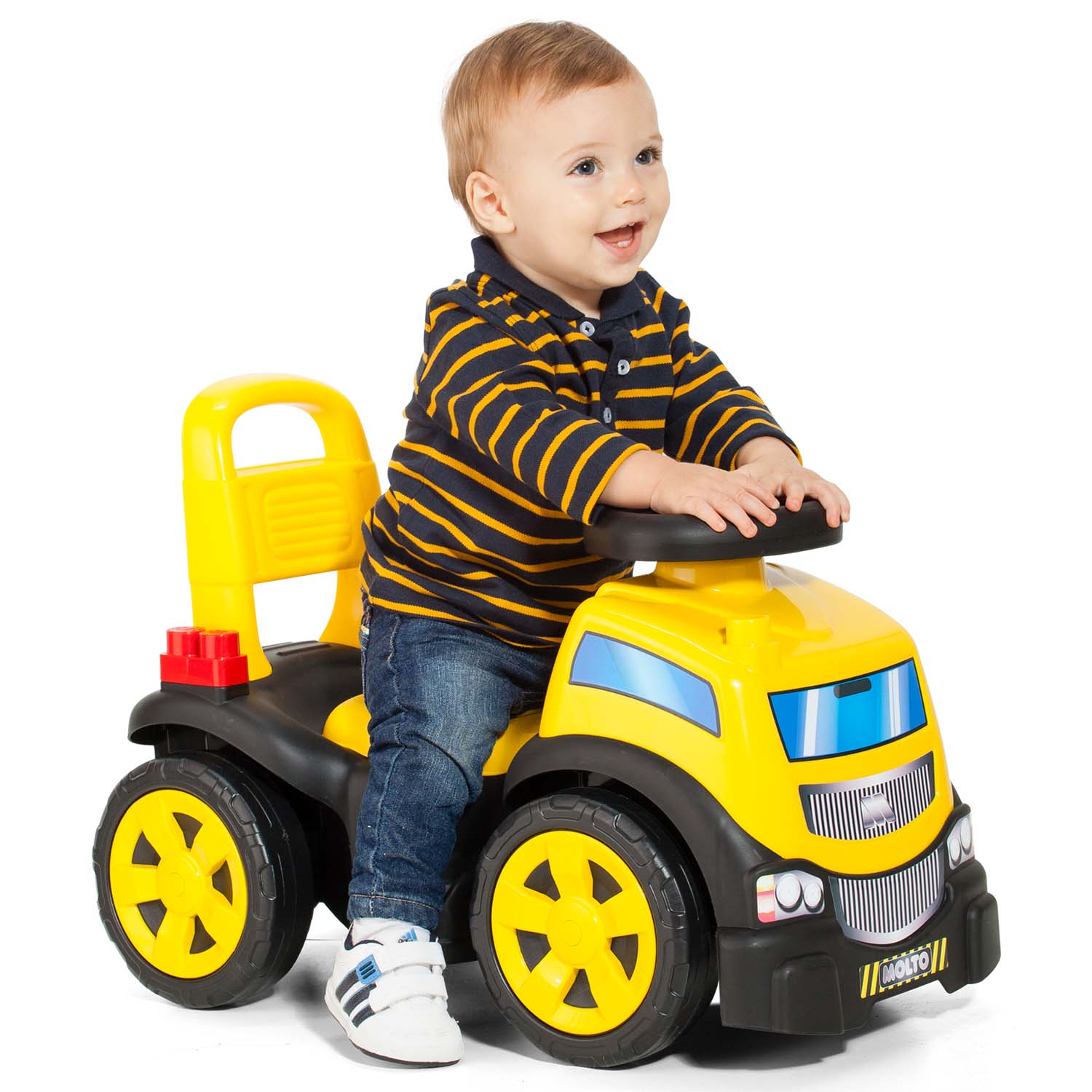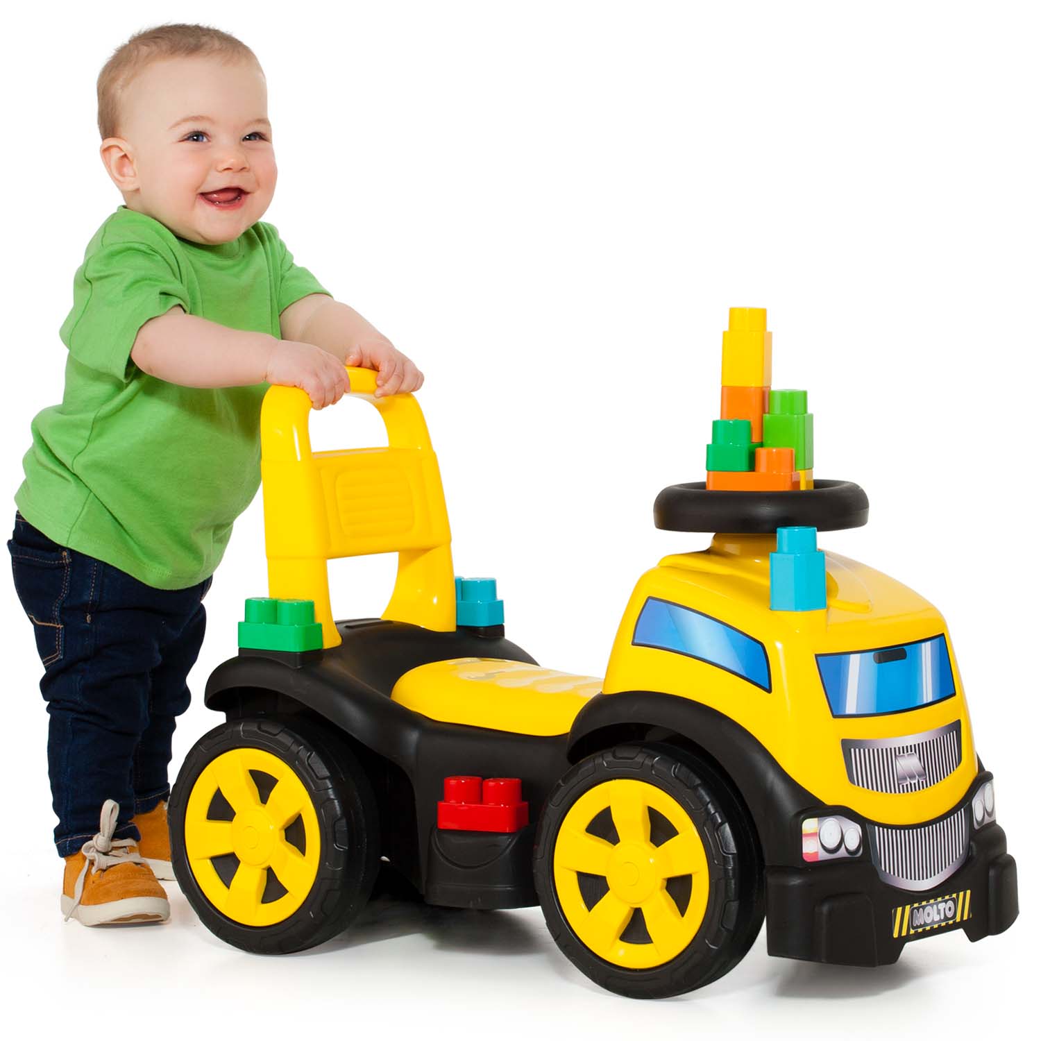 ¡Arranca la diversión con este camión correpasillos de gran tamaño y súper resistente, ideal para los pequeños exploradores que no paran ni un segundo! El Molto Ride-On Truck combina movimiento, juego y almacenamiento en un solo vehículo. Incluye 10 bloques de construcción para crear, construir y desmontar sin parar, y una cajuela secreta debajo del asiento para llevar todos sus tesoros a cualquier lugar.