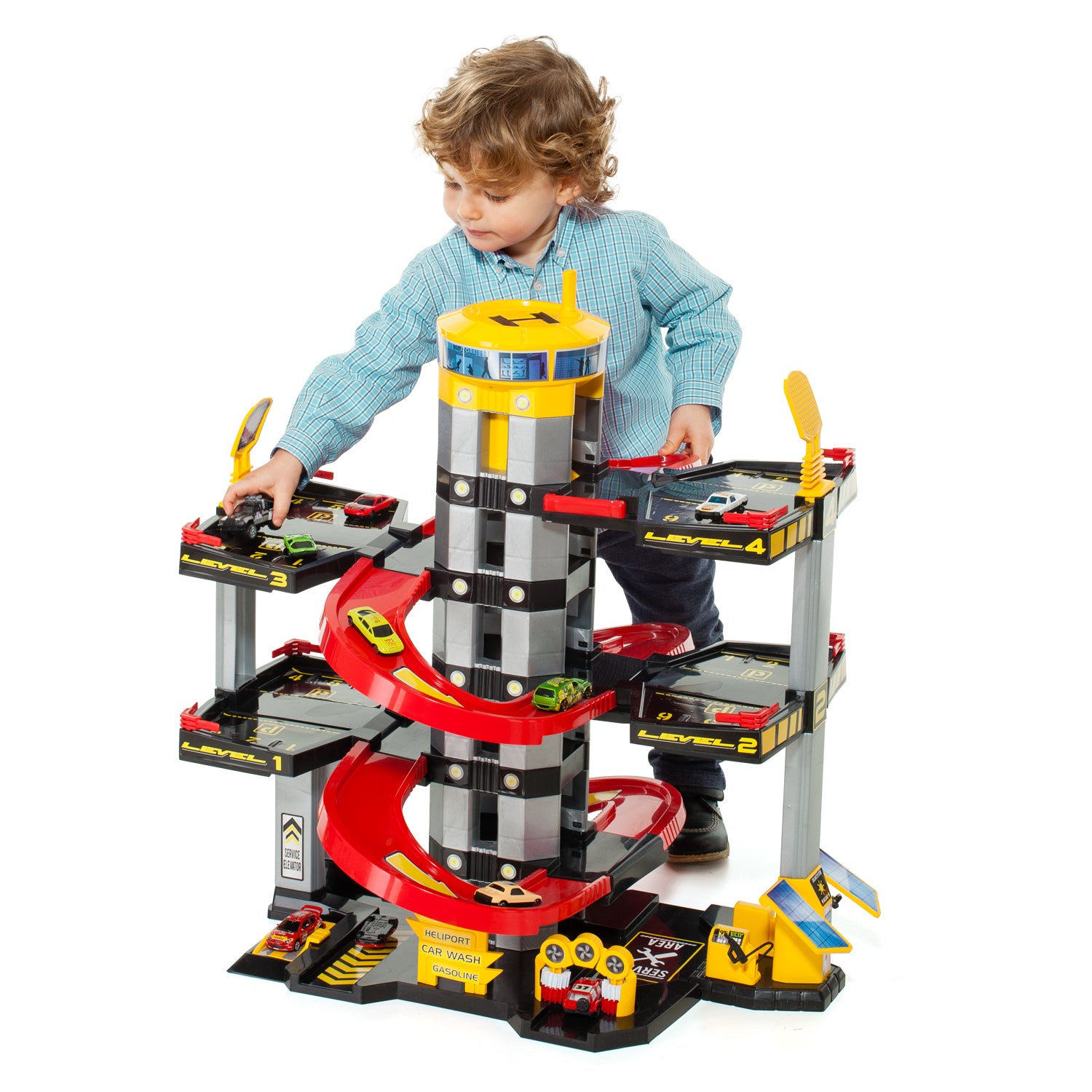Tu hijo suelta su coche desde el piso más alto, grita de emoción mientras baja en zigzag por las rampas, lo para en la estación de servicio, lo lava en el túnel de lavado y… ¡vuelve a subirlo para otra vuelta!