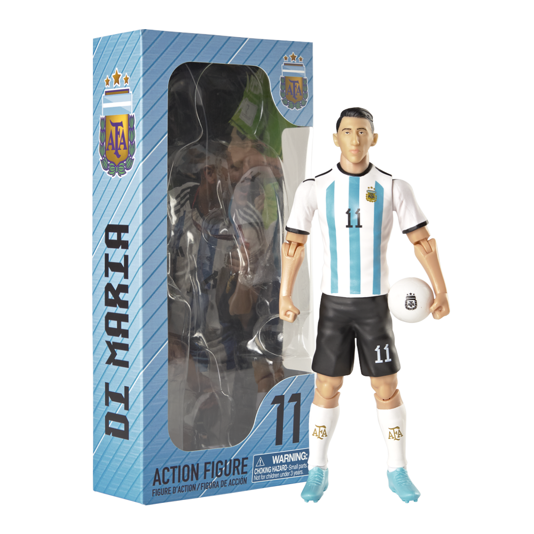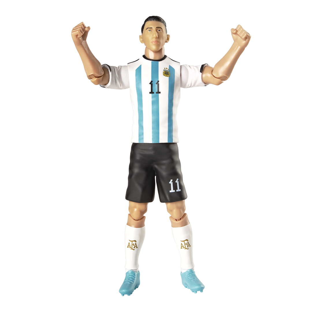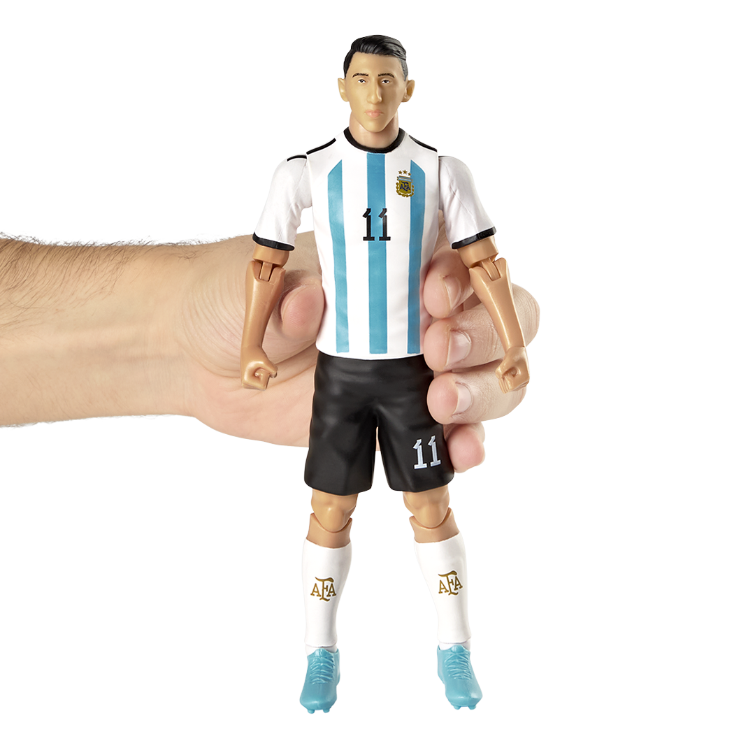 ¡Revive la magia de Ángel Di María! ⚽ Con esta figura de acción, podrás recrear las jugadas más memorables de uno de los mejores futbolistas argentinos. Mide 20 cm de altura, convirtiéndola en el regalo perfecto para los verdaderos fanáticos de la selección argentina y del Fideo.