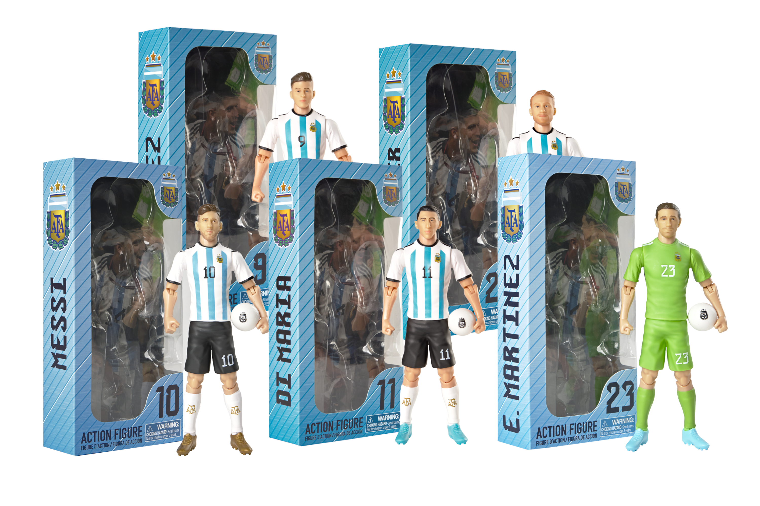 Detalles de Oro: Cada figura lleva el icónico uniforme de la selección argentina, con cada detalle y el escudo que lleva las tres estrellas. 👕✨