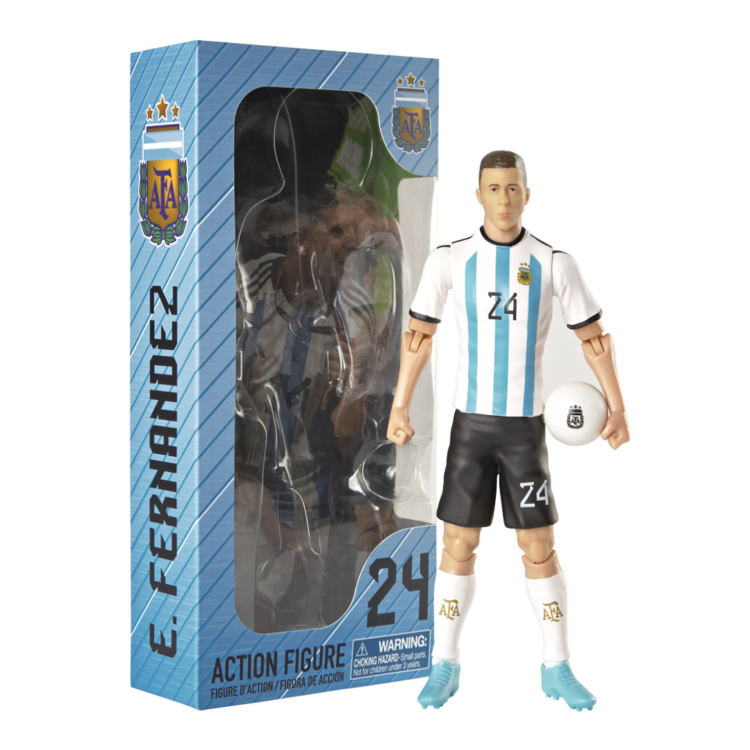 Con 20 cm de altura, esta figura es perfecta tanto para jugar recreando jugadas de Enzo Fernández como para exhibirla en tu estantería con orgullo.