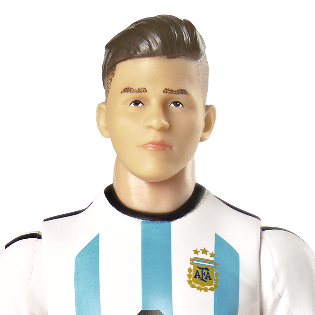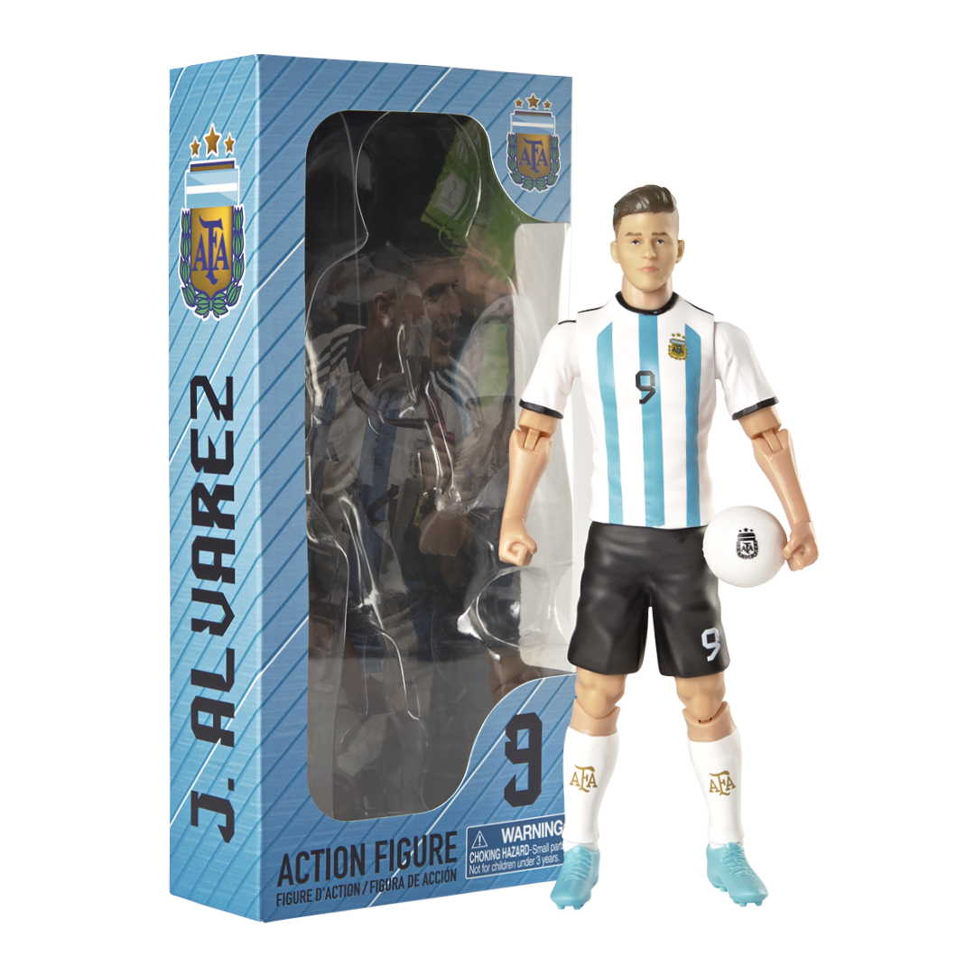 Revive los mejores momentos de Julián Álvarez! ⚽ Con esta figura de acción, podrás recrear las jugadas más impresionantes del delantero argentino. Mide 20 cm de altura, convirtiéndola en el regalo perfecto para los fanáticos de la selección argentina y de este joven talento.