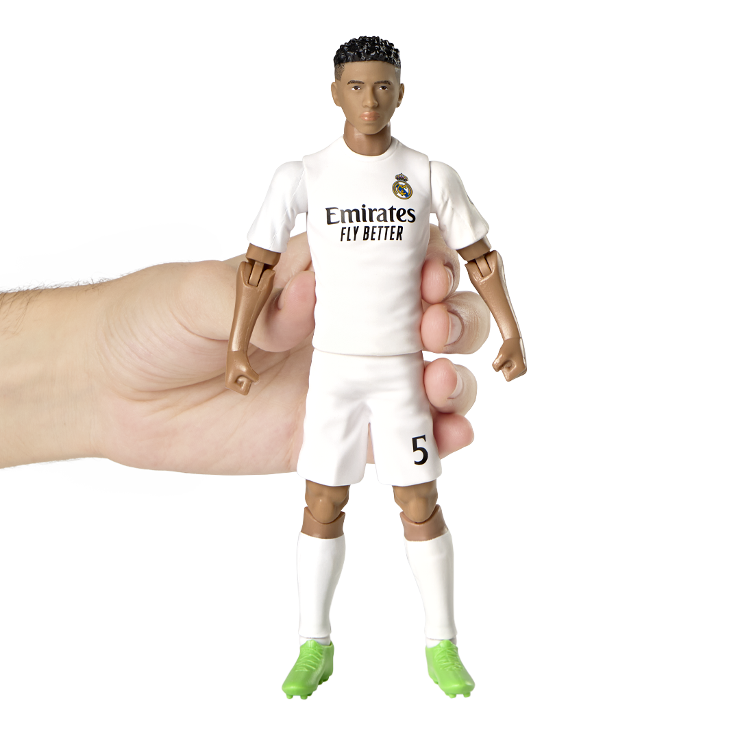 - ¡Movilidad para simular su juego de alto nivel! ⚽ Con codos, hombros y rodillas articulados, puedes recrear el estilo de juego dinámico de Bellingham. ¡Haz que se mueva por todo el campo, desde sus recuperaciones defensivas hasta sus desbordes ofensivos!
